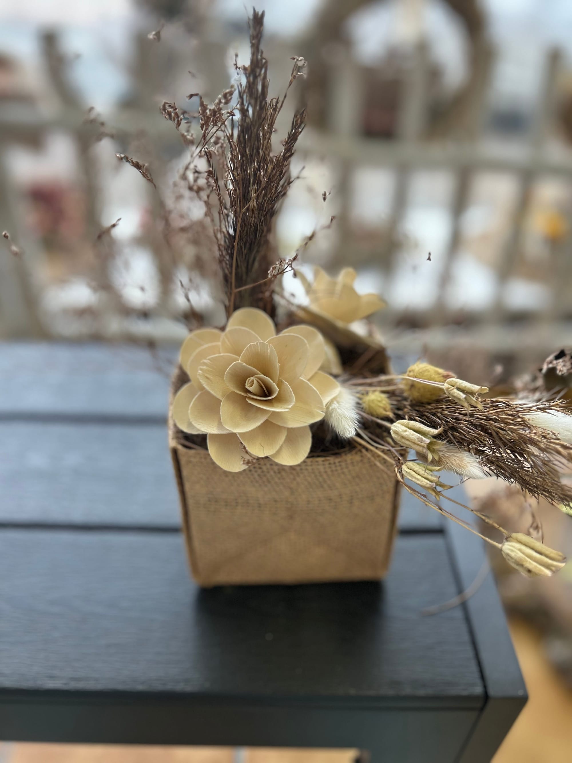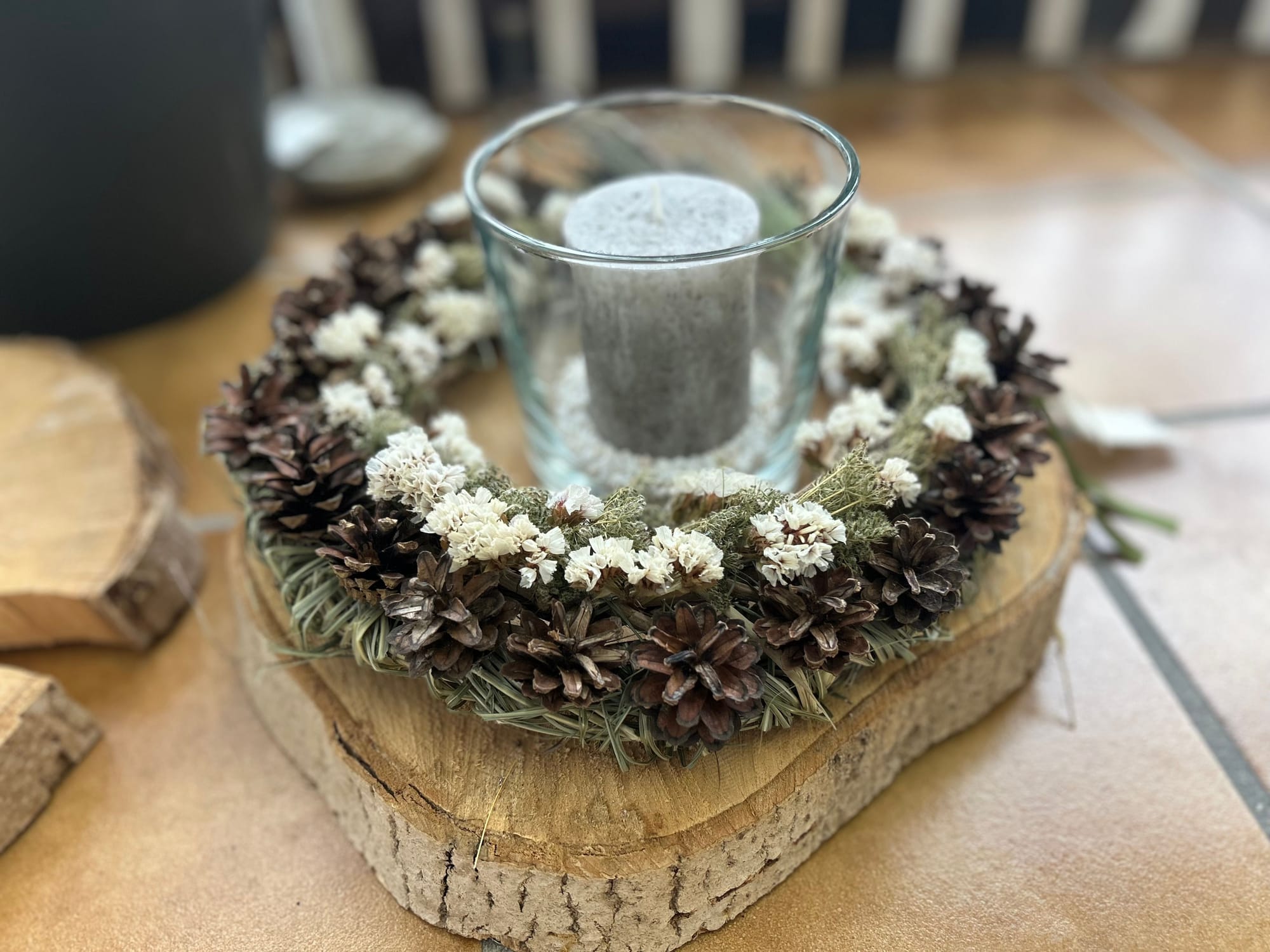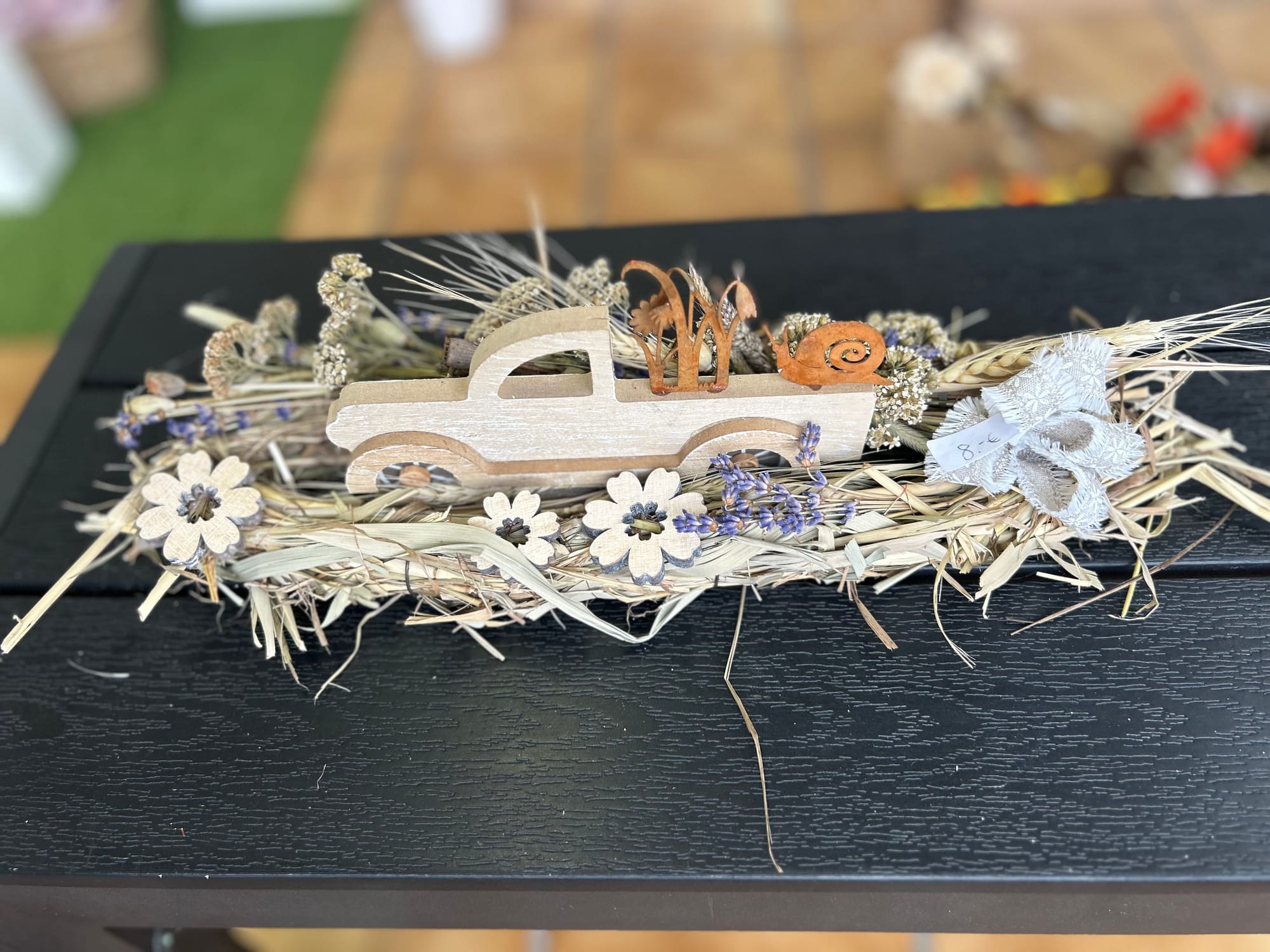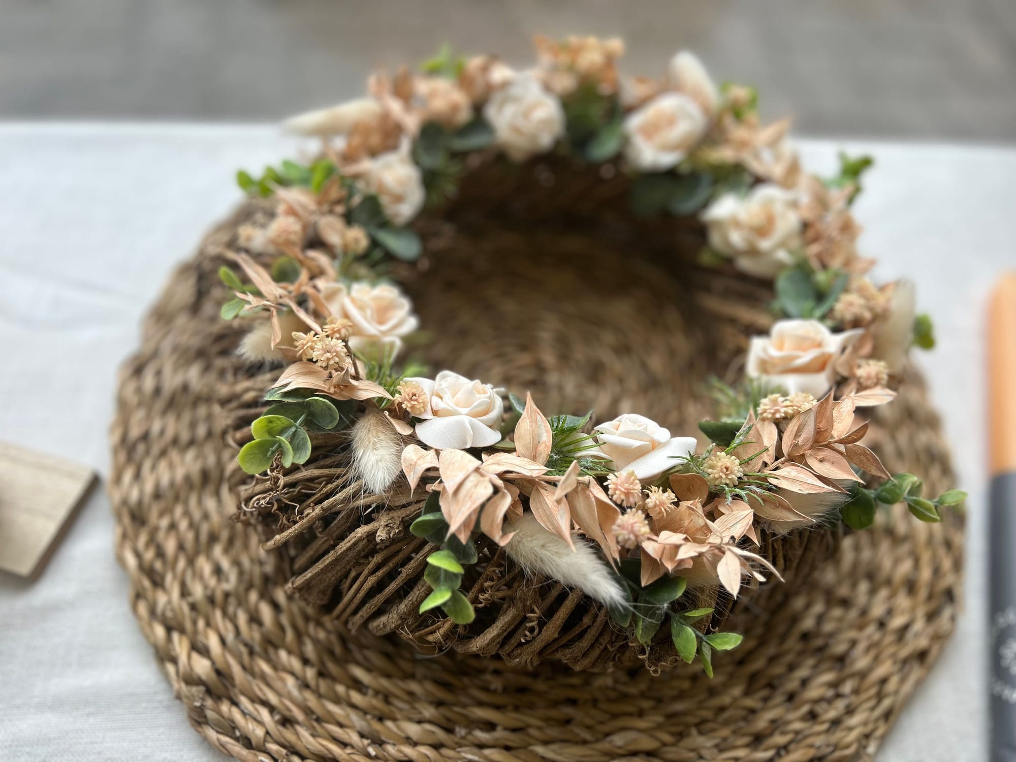 Unsere Kränze und Sträuße bestehen unter Anderem aus Naturmaterialien wie Holz, Stroh und Rebe, dekoriert mit unterschiedlichsten haltbaren Materialien wie getrocknete Blumen, Kunstblüten und Tannengrün oder Buchsbaum.