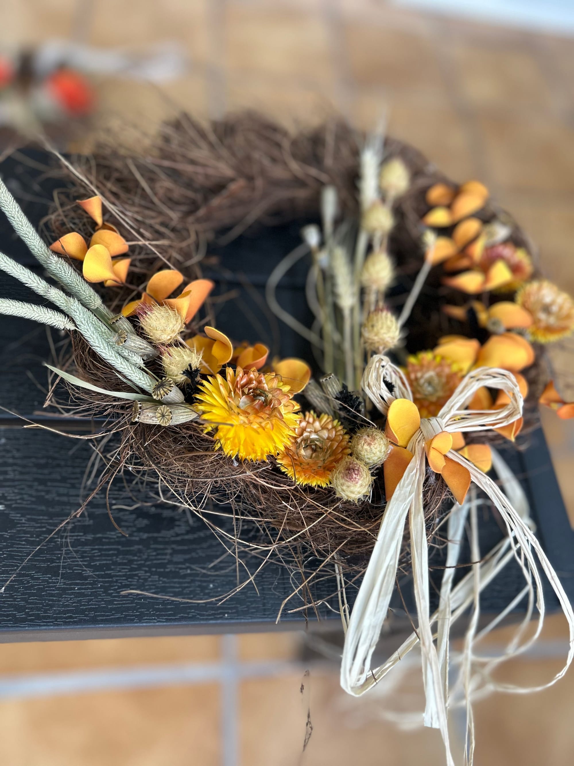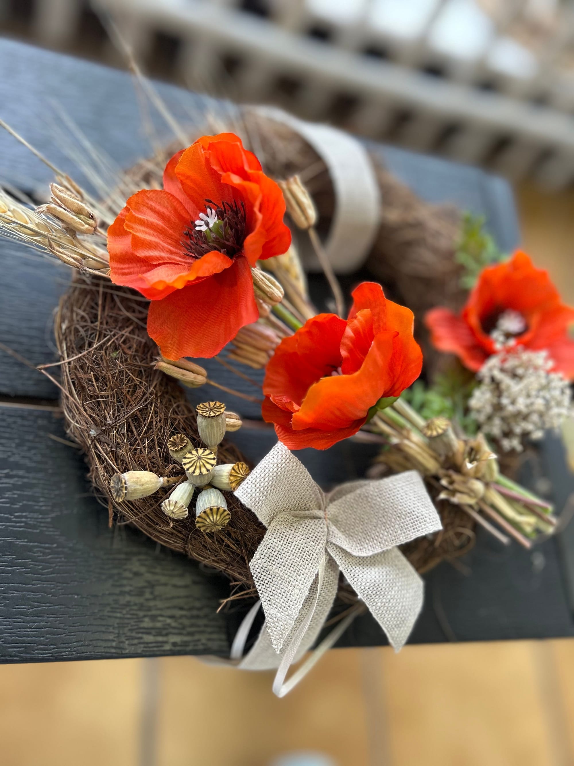 Wir bieten an, bei uns gekaufte Kränze neu zu dekorieren. Wenn ein Kranz nicht mehr zur Jahreszeit passt, sich der Farbgeschmack verändert hat oder einfach etwas Frisches her muss, sprechen Sie uns an!